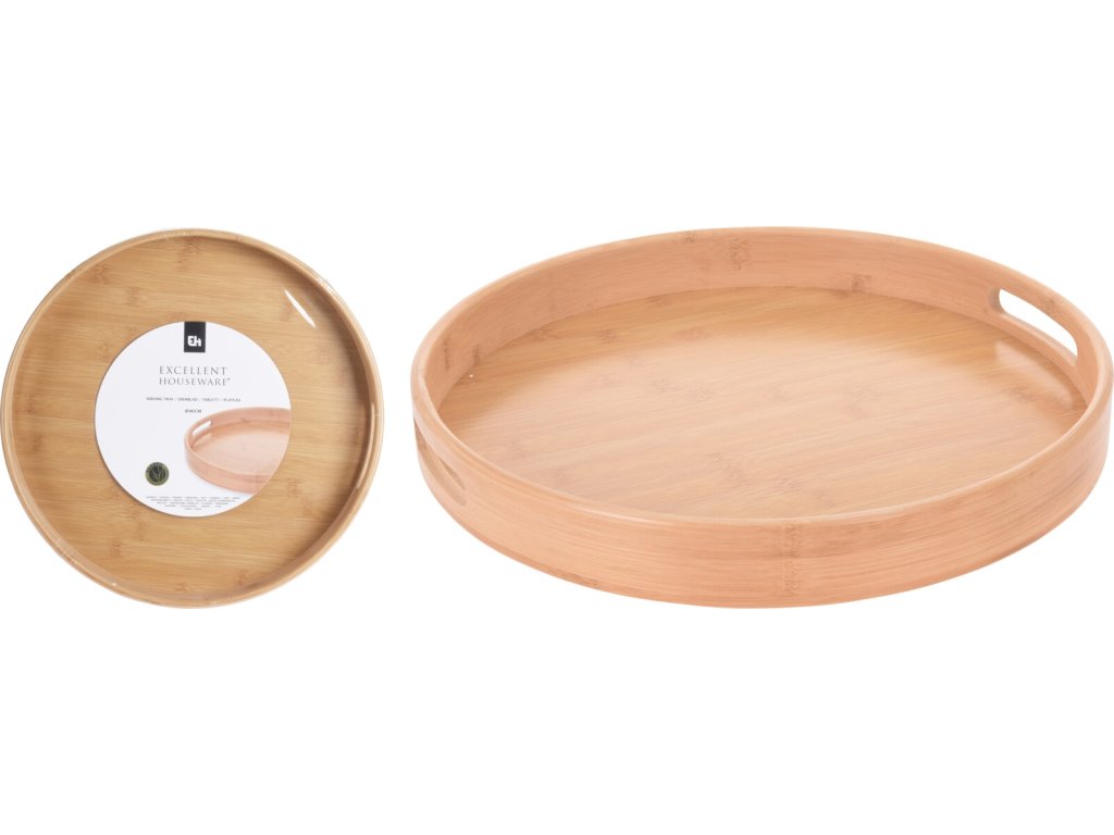 Stylový dřevěný podnos z bambusového dřeva. Chráněn impregnací, která zabraňuje absorpci vlhkosti. Je ideální pro ovoce, sladkosti, hlavní chod, popřípadě na něm můžete vytvořit vkusnou dekoraci. Průměr podnosu 40 cm, výška 5 cm.