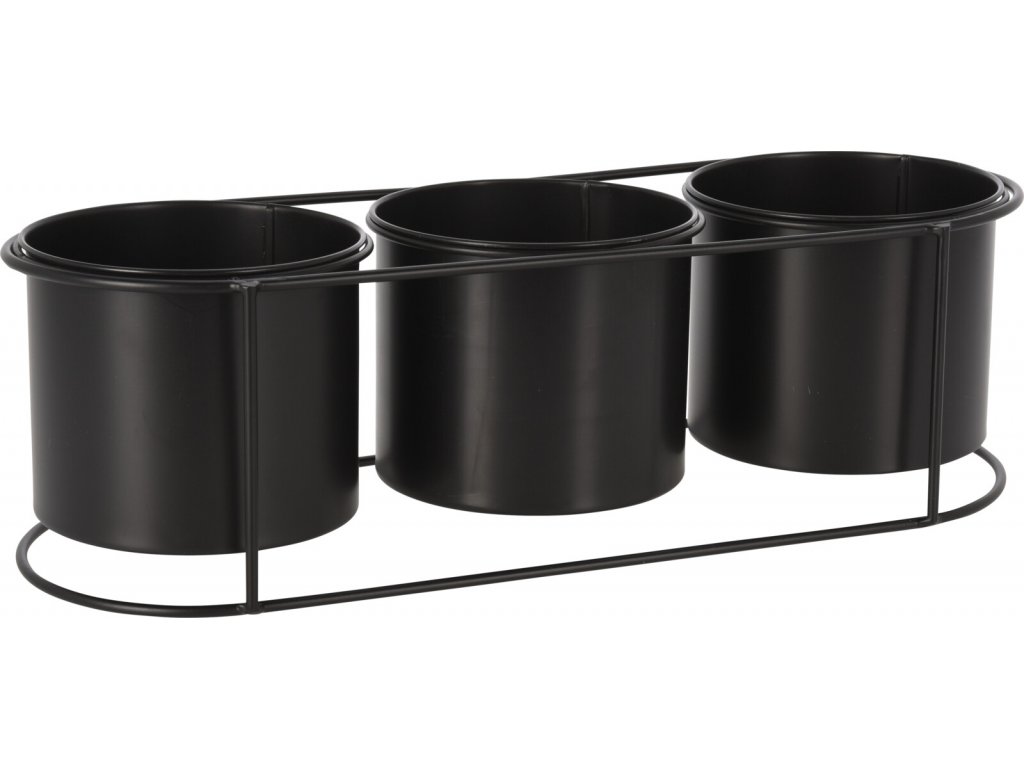 Tato čtyřdílná sada se skládá ze tří obalů na květináče a stojanu. Jednoduchý kovový stojan s černými obaly na květináč v moderním stylu se stanou jemným doplňkem ve Vaší domácnosti. Rozměry stojanu 46 x 15,5 x 13,5 cm. Průměr obalu 14,5 cm.