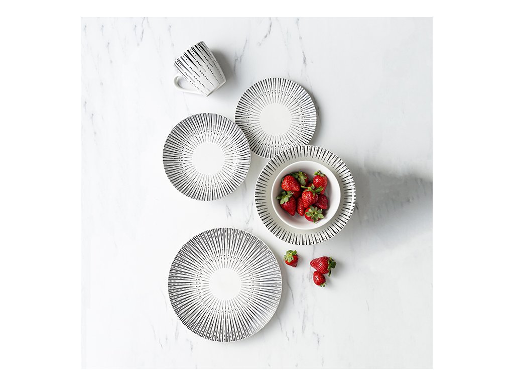 Je vyroben z kvalitního porcelánu. Má krásný moderní dekor v černé barvě, stane se tak ozdobou Vašeho stolu nejen ve svátečních chvílích, ale také při každodenním použití. Ideální je nakombinovat jej spolu s dalším nádobím stejného dekoru. Vynikající pro servírování domácích polévek, vývarů, krémů. Talíř lze použít také k podávání vloček, jogurtů, ovoce, salátů nebo přesnídávek. Snadné mytí, vhodný do myčky i k použití v mikrovlnné troubě.