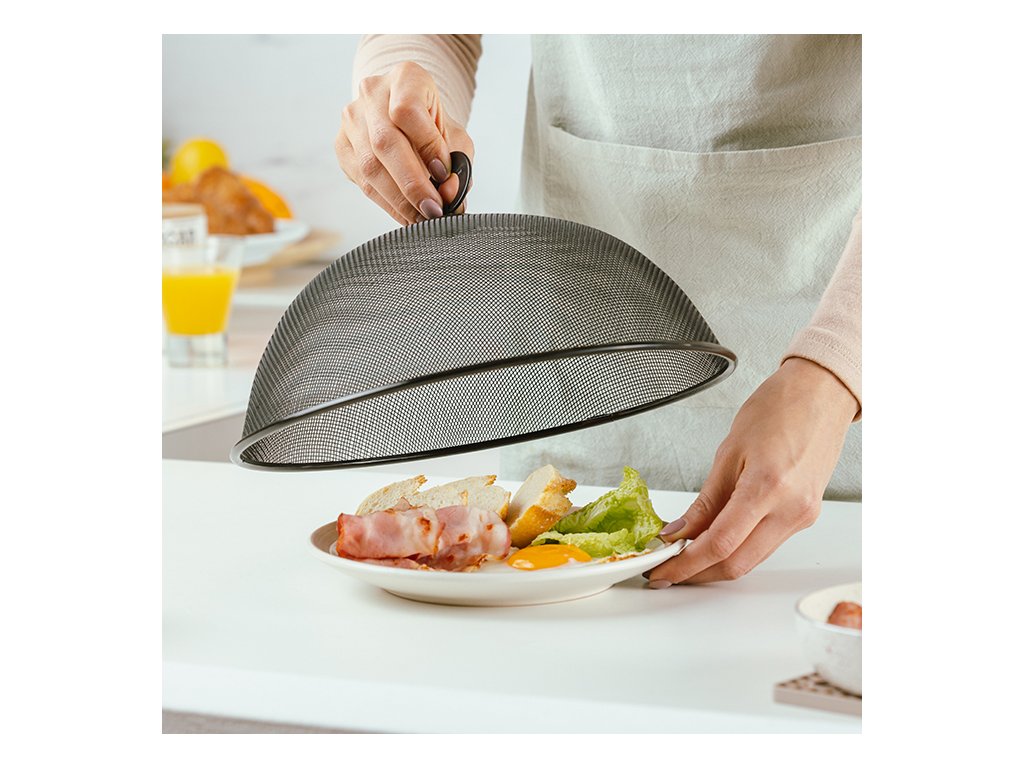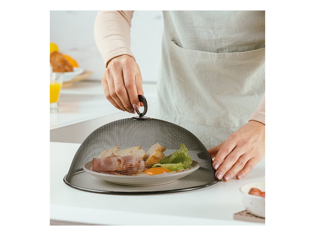 Kryt je vyroben z odolného kovu s antioxidačním povlakem, který chrání před poškozením a korozí. Průměr 28 cm, kryt tak pokryje i velké talíře a podnosy. Chraňte své jídlo, předkrmy a dezerty před hmyzem a dalšími nežádoucími hosty. Ideální pro použití v domácnosti, rauty na různých akcích i pro profesionály.