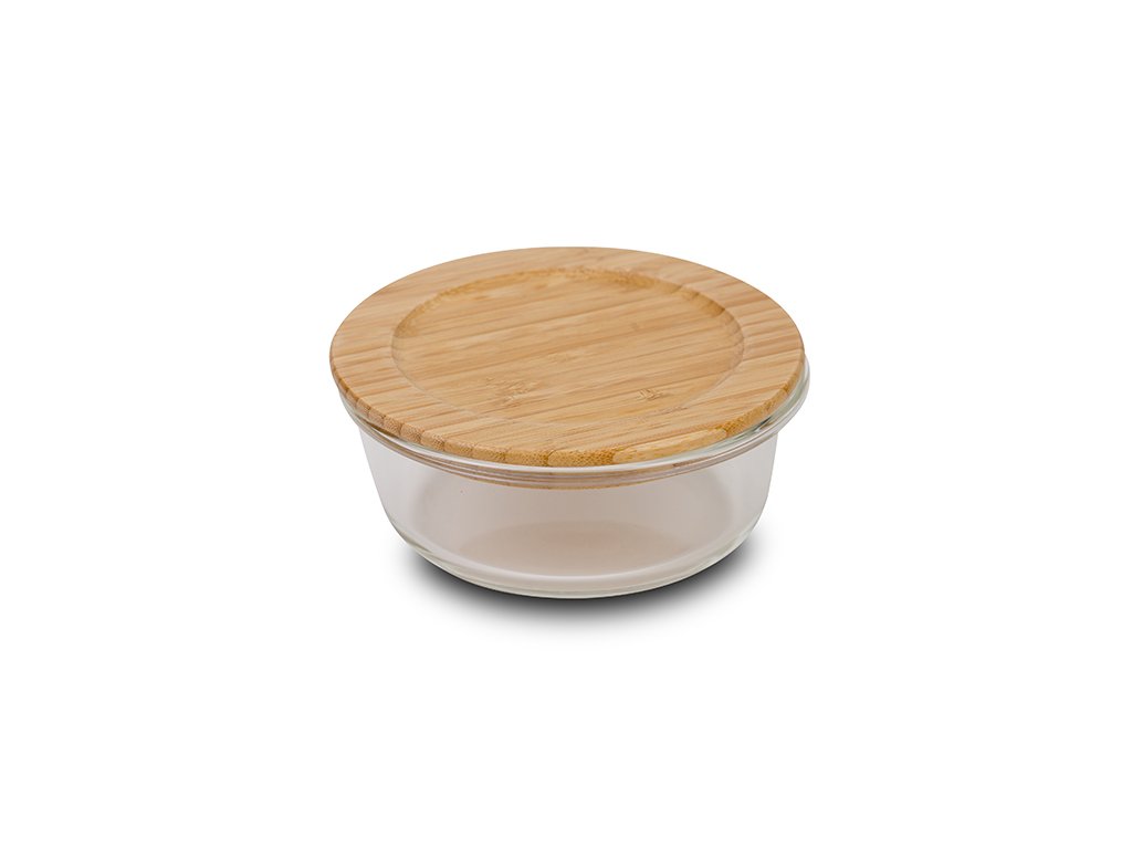 Kulatá skleněná dóza s bambusovým víčkem 600 ml