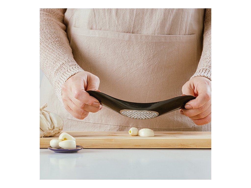 Rychlost a efektivita: Díky ergonomickému kolébkovému tvaru stačí přes stroužek česneku nebo kousek zázvoru jednoduše přejet. Během vteřiny získáte jemnou dužinu.