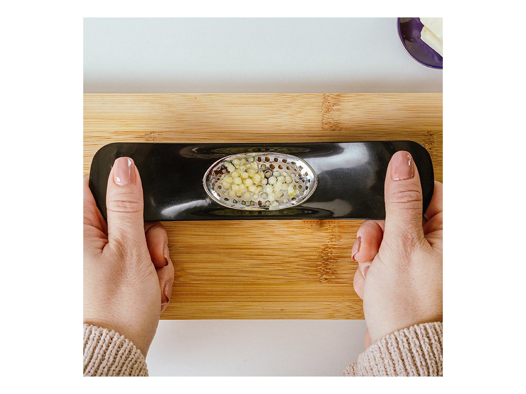 Čistota bez zápachu: Dužina zůstává na povrchu lisu, odkud ji snadno setřete přímo do hrnce nebo na talíř. Vaše ruce tak zůstanou čisté a bez typického česnekového aroma.