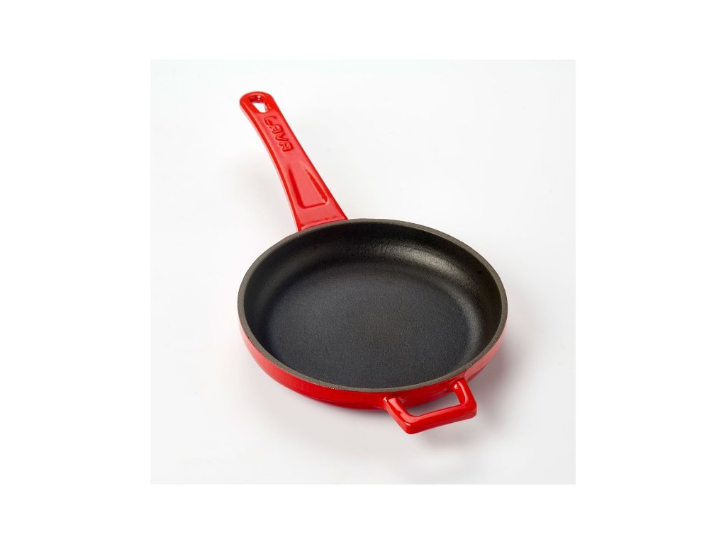 Litinové pánve a hrnce patří k nádobí, které po staletí patří k těm nejpoužívanějším. A dědí se doslova z generace na generaci. Nádobí z litiny ocení zejména kuchaři a kuchařky, kteří milují pomalé vaření. Litina patří k materiálům, které úžasně vedou teplo, sice se pomaleji zahřívá, ale zahřívá se rovnoměrně a po celé ploše. Díky tomu, že litina teplo akumuluje, můžete z pánve v klidu servírovat – jídlo nebude rychle studené. Pánev lze používat na všechny typy sporáků i ploten, včetně indukce. Můžete ji využít i jako zapékací mísu do trouby. Průměr pánve je 20 cm, výška 3,7 cm. Se svou elegantní červenou barvou se stane ozdobou Vaší kuchyně.