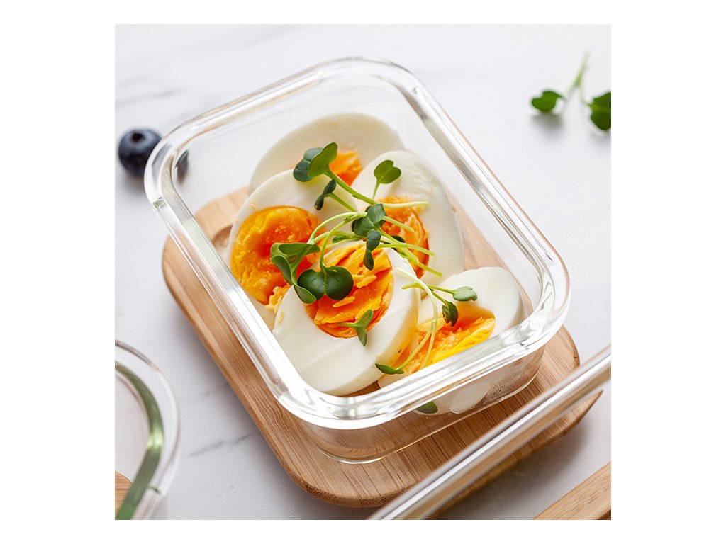 Bambusové víčko je vyrobeno z přírodního materiálu, který je odolný a snadno se udržuje. Bambusové dřevo je přirozeně antibakteriální, takže pomáhá udržet potraviny čerstvé. Těsnění je vyrobeno ze silikonu a zabraňuje vniknutí vzduchu a vlhkosti do dózy. Sklo je žáruvzdorné, nepřenáší pachy a je odolné proti poškrábání. Výška dózy 7,4 cm, délka 22,5 cm a šířka 16,4 cm. Skleněná dóza (bez víčka) je vhodná do mikrovlnné i klasické trouby, mrazáku, je možné mýt ji v myčce.