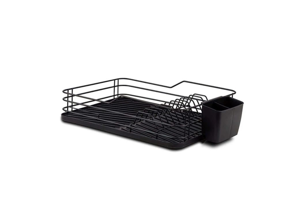 Disponuje 11 přihrádkami na nádobí, samostatným prostorem na sklenice, šálky, misky a odnímatelným pouzdrem na příbory, které lze umístit ven nebo dovnitř pro úsporu místa. Dodává se s odnímatelným plastovým táckem v matně černé barvě s protiskluzovými nožičkami, vestavěným odtokovým hrdlem a šikmým drážkovaným povrchem pro okamžitý odtok vody.