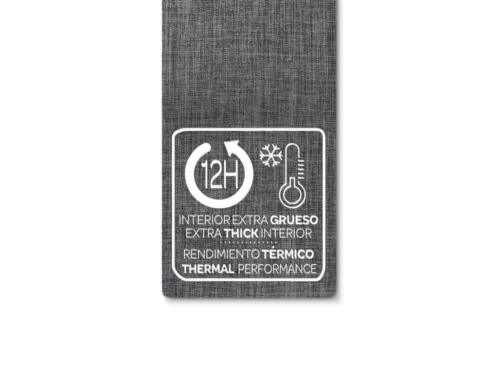Vnitřní část je vybavena extra silným termoizolačním materiálem, která uchovává potraviny v lepších podmínkách při přepravě a lépe udržuje teplotu díky vznikajícímu „ledničkovému efektu“ . Tepelná účinnost 12 hodin s použitím chladicích prvků.