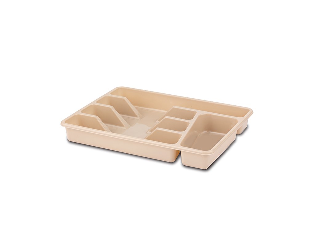 Praktický příborník do zásuvky obsahuje 3 velké přihrádky na lžíce, vidličky a nože , 1 větší přihrádku na náčiní a 1 menší přihrádku na lžíce a vidličky.